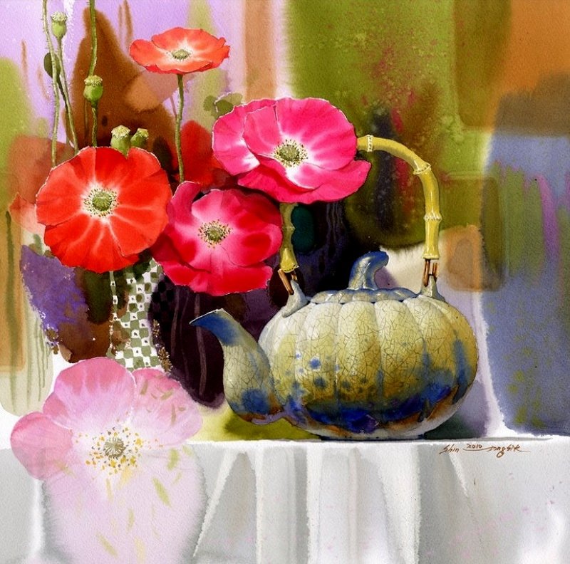 Акварелист Шин Чен Сик (Shin Jong Sik) - современный корейский художник, Получил известность благодаря своим подробным картинам в технике акварель, выполненными чистыми, прозрачными цветами и вызывающими у зрителя неподдельное чувство восхищения. В большинстве случаев это красочные натюрморты, но также в коллекции Шин Чен Сика много пасторальной живописи и пейзажей.